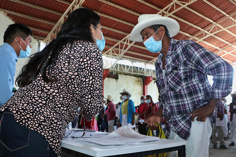 Durante el acto de atención a las y los productores, la titular de la dependencia, Ana Laura Altamirano, señaló que todos los apoyos, además de no tener ningún costo para las personas beneficiadas, son entregados en propia mano, de manera directa y sin intermediarios.