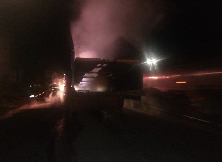 Bomberos de San Martín Texmelucan atendieron esta madrugada el incendio de un remolque de nodriza sin autos, en el kilómetro 97 de la autopista México – Puebla en dirección a la capital poblana.