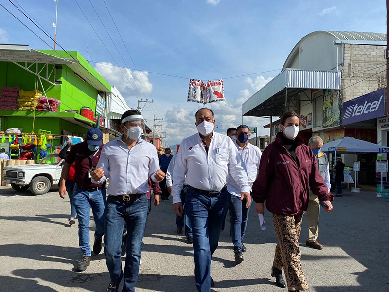 Para reconocer la suma de esfuerzos entre la sociedad y las autoridades, e incentivar la nueva cultura sanitaria y la reactivación económica segura en el comercio popular, el secretario de Gobernación, David Méndez Márquez, verificó la aplicación del Pacto Comunitario en el tianguis de Loma Bella y la Central de Abasto de San Salvador Huixcolotla.