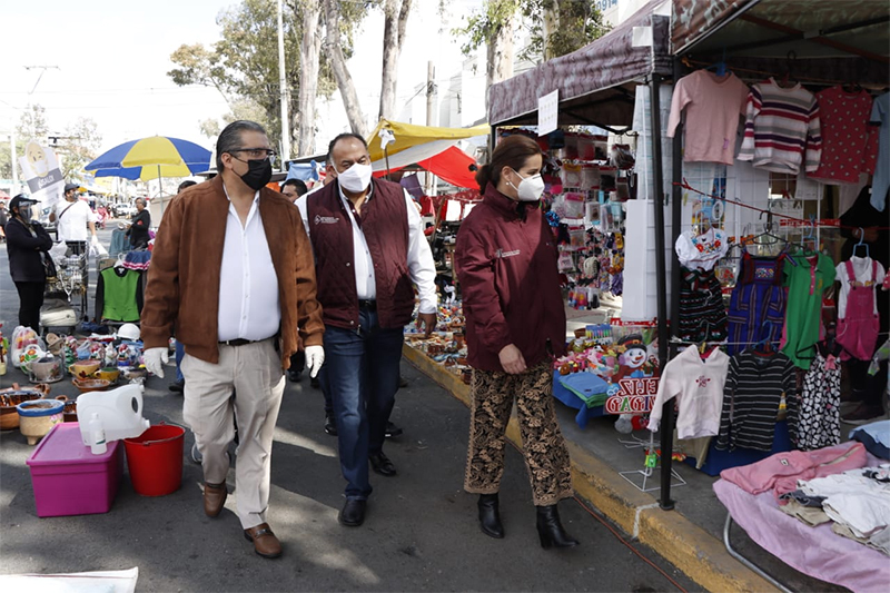 Méndez Márquez saludó y felicitó personalmente a las y los vendedores en ambos lugares, pues subrayó que cuando ellos ponen en práctica el protocolo sanitario, como el uso obligatorio del cubreboca y disposición de gel antibacterial y lavamanos, promueven estas nuevas medidas de protección en su entorno familiar, laboral y social, lo que a su vez favorece la contención de contagios colectivamente.