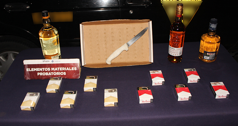 De inmediato, los elementos dieron alcance a la unidad y procedieron a la detención del masculino. Adicionalmente, se recuperaron botellas con licor y cajetillas con cigarros, producto del acto ilícito. También, se aseguró un objeto punzocortante.