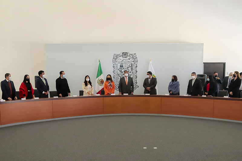 En la sesión estuvieron presentes los secretarios de Gobernación e Igualdad Sustantiva, Julio Huerta Gómez y América Rosas Tapia; los presidentes del Tribunal Superior de Justicia y Congreso local, Margarita Gayosso Ponce y Eduardo Castillo López; el titular de la Fiscalía General del Estado, Gilberto Higuera Bernal, así como representantes de asociaciones civiles y academia.