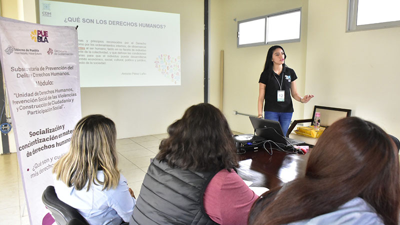 Como parte de la estrategia que implementa el gobierno presente de Sergio Salomón para atender, prevenir y erradicar la violencia contra las mujeres, personal adscrito a la Subsecretaría de Prevención del Delito y Derechos Humanos de la Secretaría de Gobernación recibió el curso “Aspectos Fundamentales de los Derechos Humanos y Violencia de Género”, por parte de la Comisión de Derechos Humanos de Puebla.