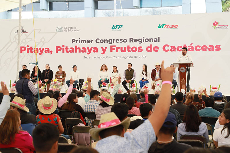 Con el objetivo de vincular a productores, comercializadores y expertos, así como fortalecer al sector agroindustrial, inició el Primer Congreso Regional de pitaya, pitahaya y frutos de las cactáceas UTECAM 2023, que fue encabezado por el secretario de Gobernación, Javier Aquino Limón, quien resaltó la importancia que da el gobierno presente de Sergio Salomón a este tipo de eventos que abonan al desarrollo de las familias poblanas.