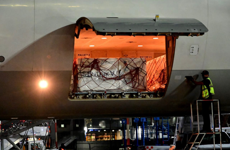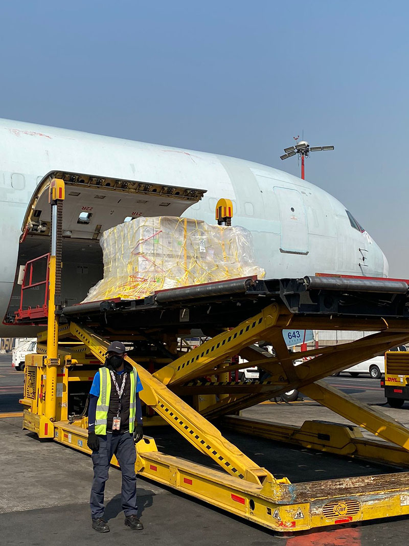 También, en punto de las 10:02 h, arribó al AICM el vigésimo segundo cargamento de Pfizer-BioNTech en la aeronave CVG MEX 952 con biológicos de la farmacéutica con sede en Bruselas, Bélgica.