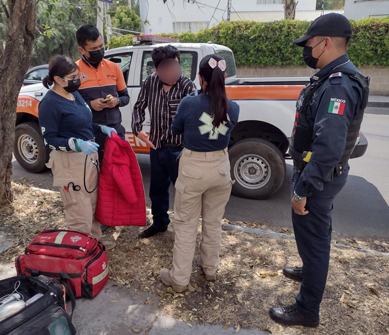 Conforme a protocolo, las Fuerzas Municipales procedieron a resguardar al hombre. Al lugar, arribaron paramédicos de Protección Civil para brindar atención prehospitalaria.