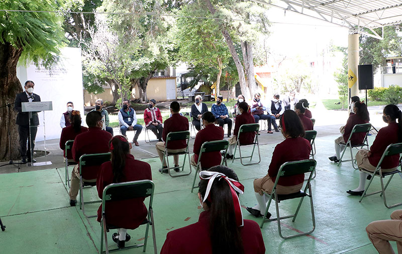 La dependencia ejecutó este programa en el marco del convenio de colaboración “Semarnat-SEP Inicio del Ciclo Escolar 2021-2022”, firmado en abril de este año. En el acto estuvo presente la subsecretaria de Educación Obligatoria, María del Coral Morales Espinosa, la subsecretaria de Educación Superior, América Rosas Tapia y el director General del Centro Escolar, Alberto Odín Ojeda Guzmán, así como alumnos, docentes y directores.