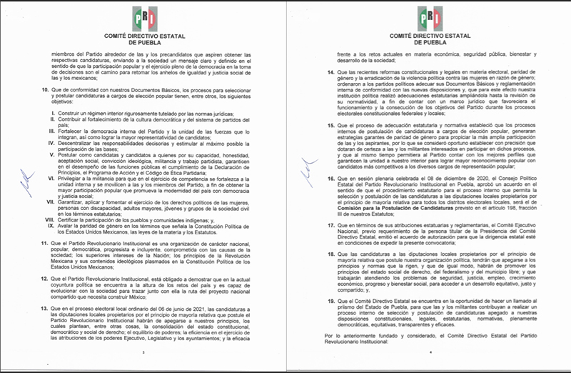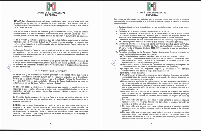 El Partido Revolucionario Institucional (PRI) lanzó las convocatorias para quienes aspiren a ser precandidatos a diputados locales y presidentes municipales en el Estado de Puebla.