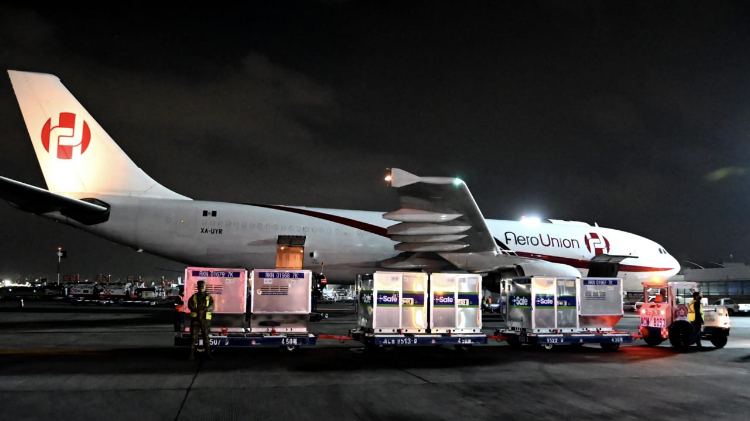 Este domingo por la noche, México recibió un nuevo embarque de vacunas envasadas contra covid-19 de la farmacéutica AstraZeneca con 709 mil 300 dosis.