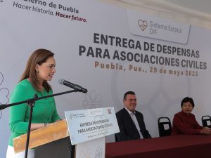 En este evento, el SEDIF entregó paquetes alimentarios en beneficio de las familias de las y los brigadistas forestales, cuya labor fortalece las acciones para resguardar el patrimonio natural de Puebla.
